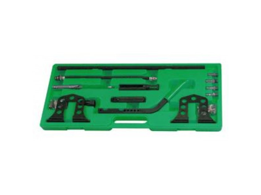 Опоры штанги устанавливаются на монтажные элементы ГБЦ, штанга устанавливается в отверстия опор в зависимости от положения обслуживаемого клапана, на Г-образном рычаге устанавливается толкатель тарелки пружины клапана. Сжатый воздух подается через свечные отверстия с помощью входящего в комплект шланга и, при необходимости, дополнительного адаптера.