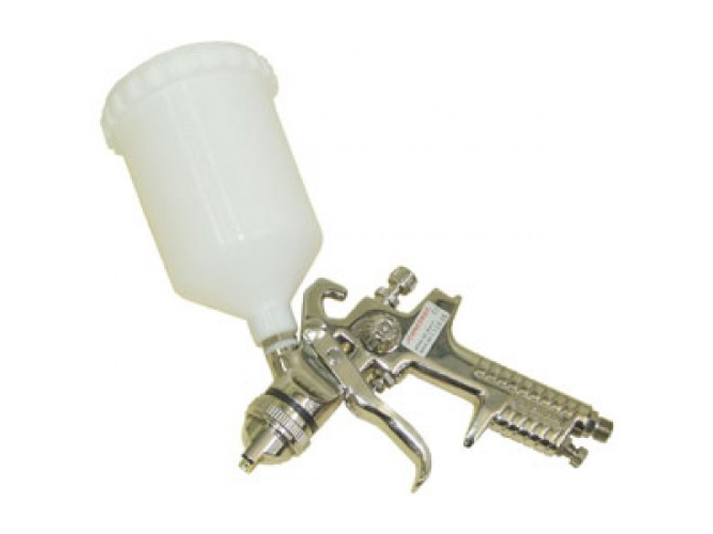 Покрасочный пистолет конвенционального типа и гравитационной подачей ЛКМ применяется для производства малярных работ со всеми типами лакокрасочных материалов*.