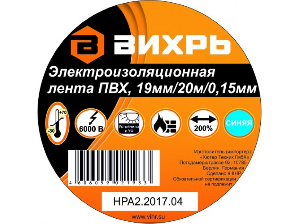 Изоляционная лента ВИХРЬ используется для проведения всех видов электромонтажных работ: электрической изоляции проводников, сращивания и жгутирования, защиты от механических повреждений, цветовой маркировки. Изолента изготовлена на основе пленки из поливинилхлоридного изоляционного пластиката. Специальные добавки, используемые при производстве данного материала, повышают эластичные свойства ленты, увеличивают ее долговечность и обеспечивают устойчивость к горению.