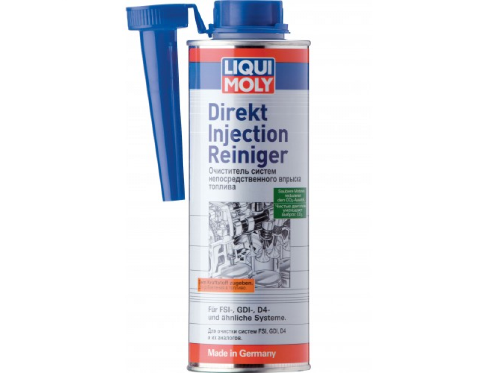 Direkt Injection Reiniger - специальное средство для очистки форсунок непосредственного впрыска систем GDI, FSI, D4 и подобных. Заменяет очистку на специальном стенде. Позволяет быстро и эффективно удалять нагар, смолы и отложения. Снижает расход топлива и выбросы вредных веществ.