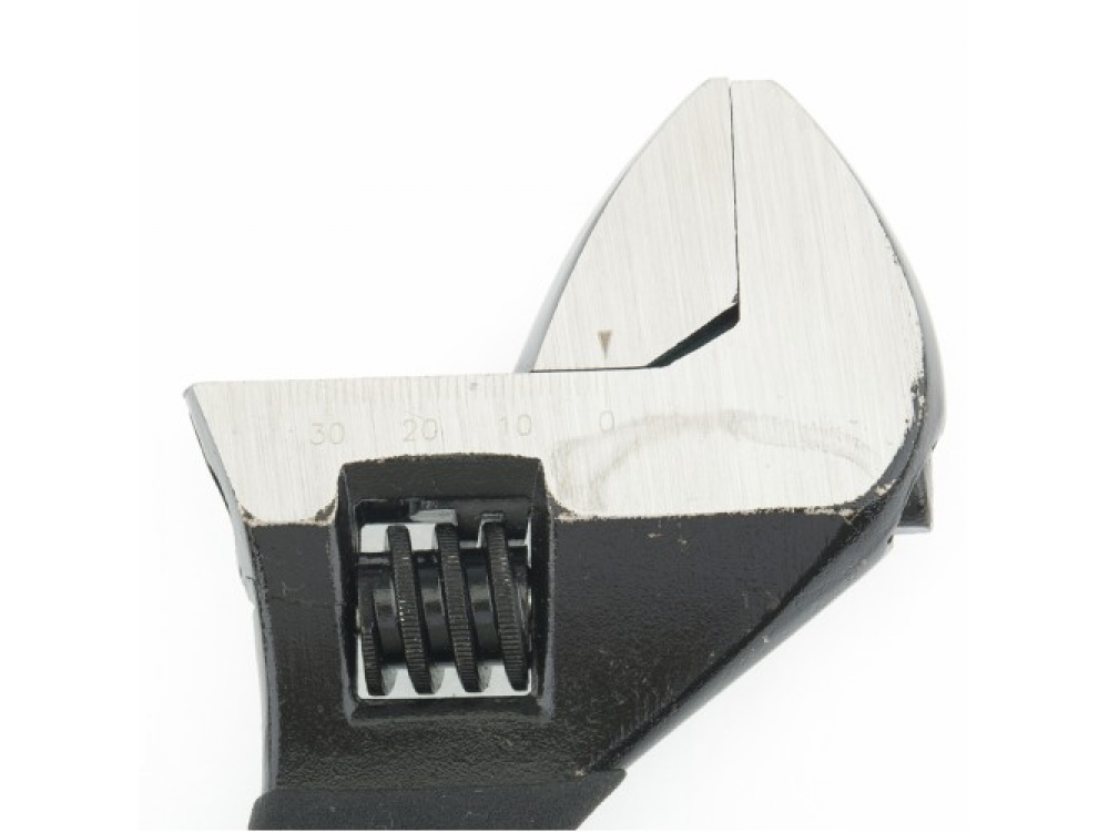 Ключ разводной изготовлен из углеродистой стали и подвергнут селективной закалке. Для разведения губок на точно заданное расстояние на неподвижной губке нанесена градуировка, а на подвижной – точечная риска. Встроенный в тело ключа червячно-винтовой механизм защищен от коррозии. Рожковый разводной ключ предназначен для монтажа и демонтажа резьбовых соединений с широким диапазоном размеров крепежа.