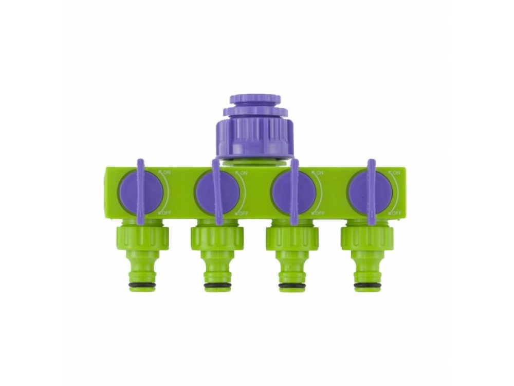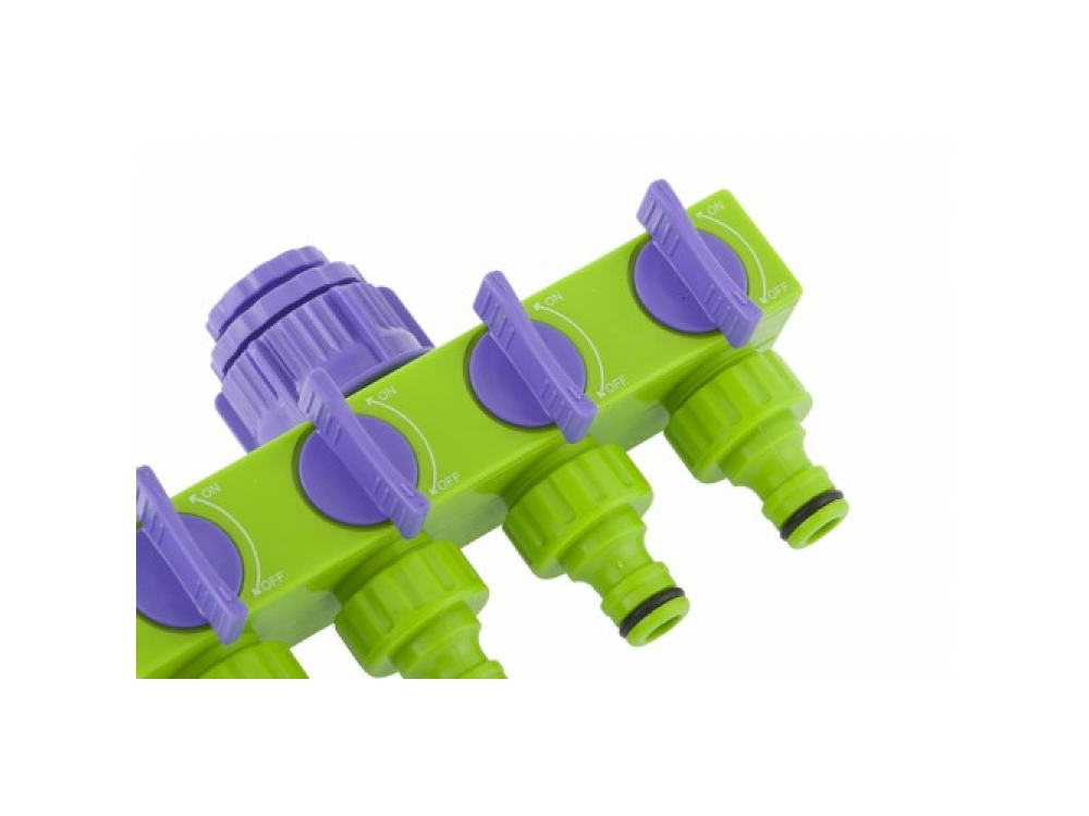 Разветвитель применяется для подключения одновременно четырех водопроводных линий.