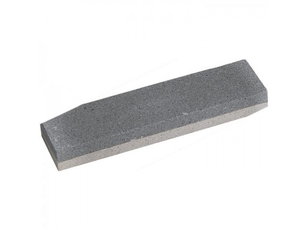 Искусственный двухсторонний точильный камень изготовлен из оксида алюминия, с двумя размерами зерна (с разных сторон бруска). Применяется для правки и заточки режущих кромок инструментов и последующей доводки.