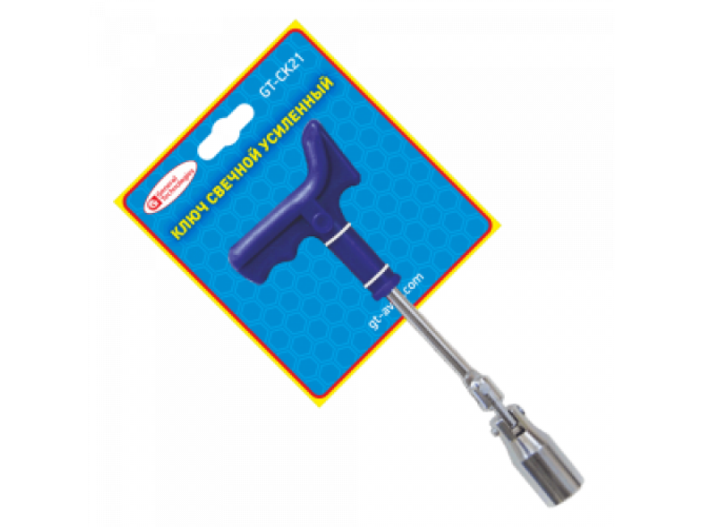 Благодаря тому, что данная модель изделия обладает шарниром можно без труда осуществлять работу в тяжелодоступных местах не затрачивая при этом лишних усилий. Ручка представленной модели изделия является обрезиненной и не скользит в руке, что значительно увеличивает надежность и комфорт в осуществлении работы. Свечной ключ используется непосредственно для осуществления установки и демонтажа автомобильных свечей зажигания. Головка ключа произведена из высокопрочной и качественной углеродистой стали.