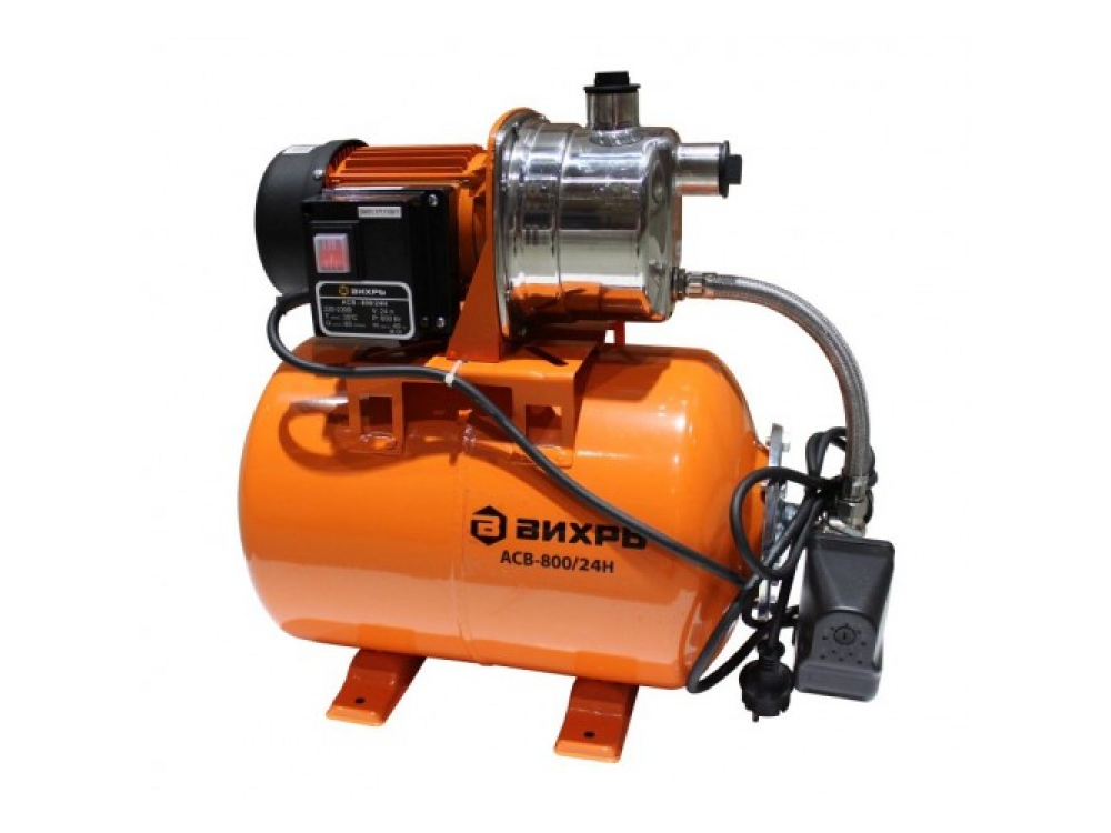 Насосная станция ВИХРЬ АСВ-800/24Н предназначена для бесперебойного водоснабжения коттеджей, дач, ферм. При этом она в автоматическом режиме поддерживает необходимое давление в системе водоснабжения, самостоятельно включаясь и отключаясь по мере расходования воды потребителями.